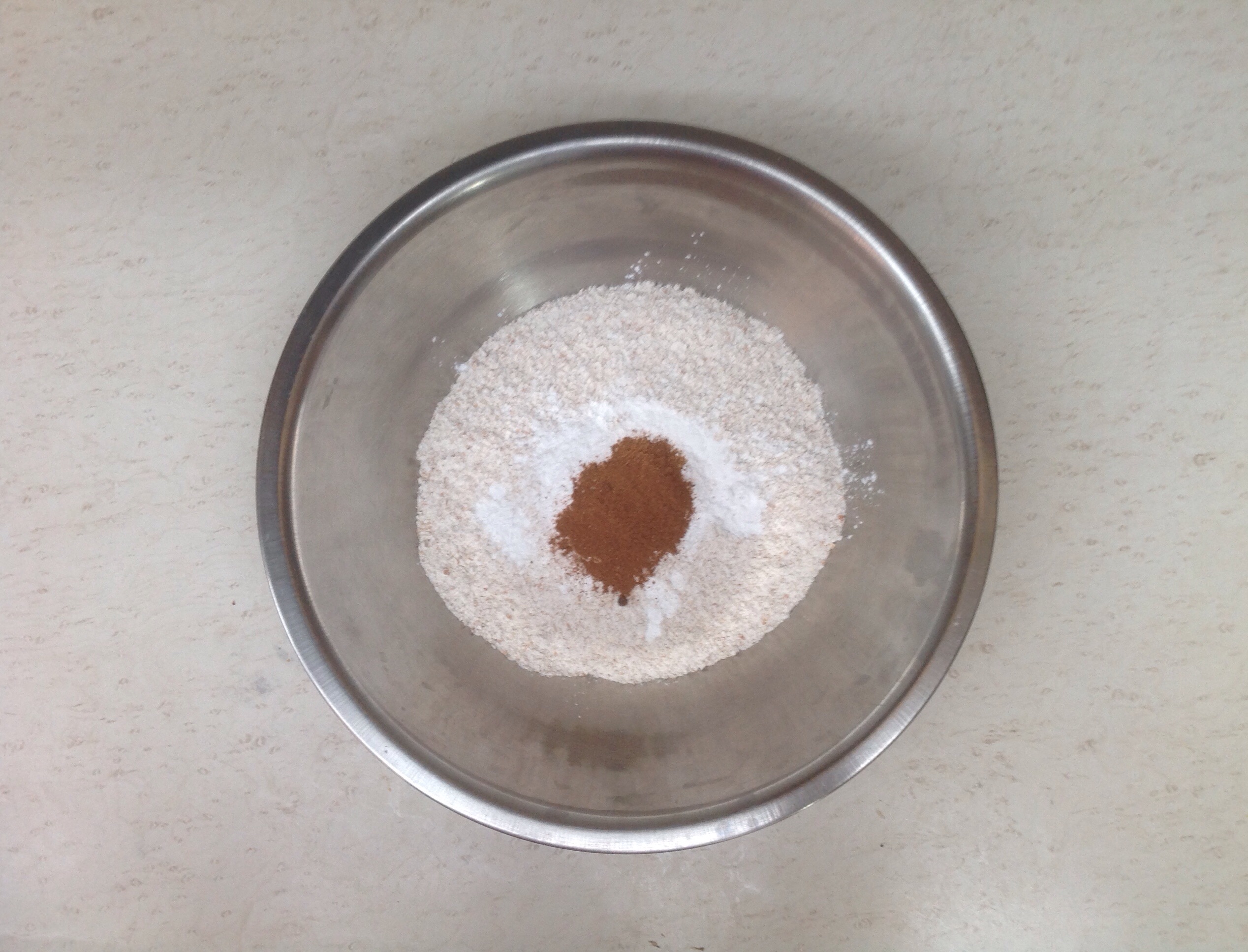 1.- Se mezclan los ingredientes secos (harina, sal, royal, canela, nuez moscada y clavo)