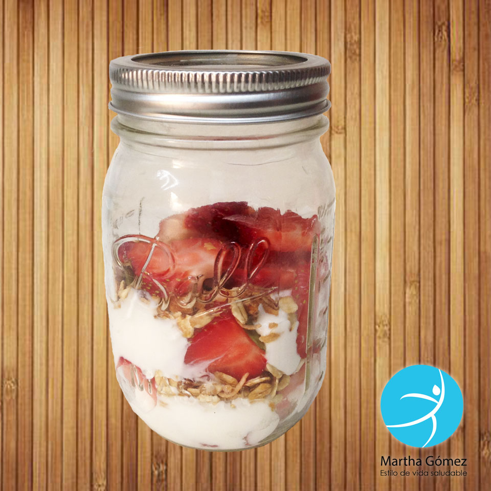 ía. Puedes llevarte tu yogurt bajo en grasa y azúcar en un trastecito a parte y las frutas y frutos en otra bolsita, de ésta forma evitas que se caliente o se vuelva una mezcla extraña, entre las frutas te sugiero agregar manzana, arándanos o pera, pero cualquier fruta de tu agrado sirve y de frutos secos te aconsejo agregar nueces o almendras, si quieres agregar un toque más nice puedes agregar amaranto o granola.