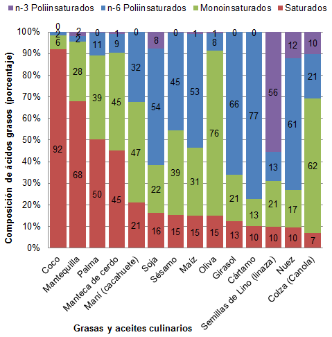 En la siguiente imagen se observa el contenido de ácidos grasos en diferentes aceites: